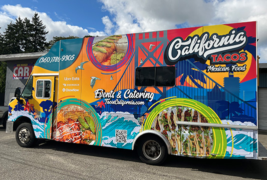 With 10 years of experience in the vehicle wrapping business, Mr Print One is ready to bring its top-notch expertise to your Seattle / Tacoma catering truck. Our professional, certified installation staff takes pride in getting the job done right. We use top-end materials from industry-leading manufactures like 3M to put a superior finish on your lunch truck wrap project. Wraps are cost effective and durable. All printed graphics are laminated to provide protection against ultraviolet light and extend the life of the wrap. Mr Print One uses state-of-the-art Roland printers to deliver the crisp, vivid and precise images you want and you need for your Seattle Tacoma food truck wraps and to get catering business noticed.